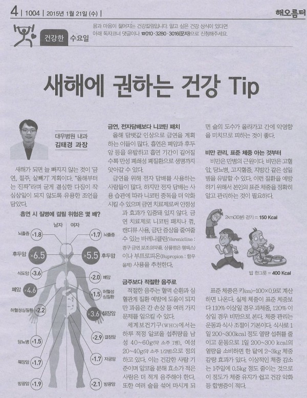 [대우조선해양 해오름터] 새해에 권하는 건강 Tip 페이지 정보 대우병원 작성일15-03-18 14:01 조회36,125회 댓글0건 본문 [대우조선해양 해오름터] 새해에 권하는 건강 Tip 이전글 다음글 목록