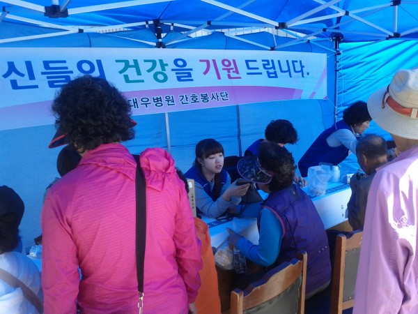 저혈압 환자 및 외상환자가 발생 하였는데, 대우병원 간호봉사단에서 신속히 응급처치를 시행하여