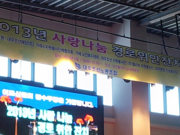 5월 11일 간호봉사단에서 대우조선노동조합에서 주최한 2013년 사랑나눔 경로위안잔치에 참여하여