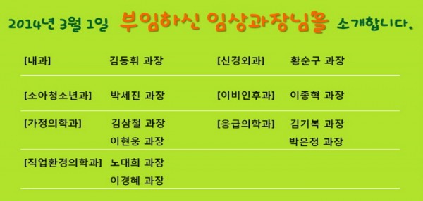 [소식] 대우병원 새로운 의료진 대폭 보강! 페이지 정보 대우병원 작성일14-03-03 12:21 조회86,183회 댓글0건 본문 상세보기 > http://blog.naver.com/tosk75/100206421676 이전글 다음글 목록