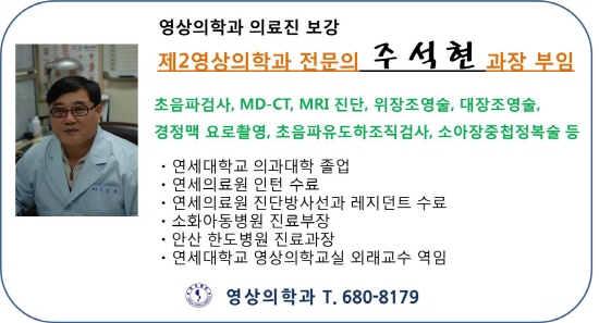 [소식]제2영상의학과 전문의 주석현 과장 부임 페이지 정보 대우병원 작성일13-12-19 08:38 조회77,545회 댓글0건 본문 [소식]제2영상의학과 전문의 주석현 과장 부임 이전글 다음글 목록