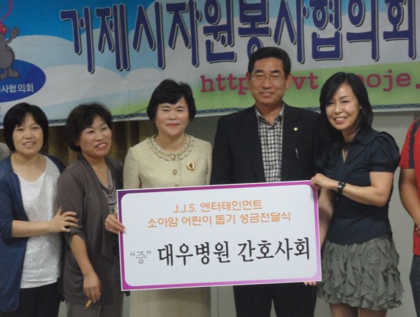 이번 모금 활동은 경제적으로 어려움에 처해있는 이동욱(18세, 전신지체장애 1급, 뇌성마비)군의 주거지를 마련하기 위해 (사)J.J.S. 엔터테인먼트에서 후원금을 조성하는 “이동욱군 사랑의 집짓기” 활동 소식을 듣고, 본원 간호사들의 의견을 반영하여 십시일반으로 성금을 모으게 되었다. 비록 큰 금액은 아니지만 항상 마음을 열고 어려운 이웃을 돕기 위한 우리 대우병원의 소리 없는 천사들의 사랑 담긴 마음이 전해지기를 기원해 본다.