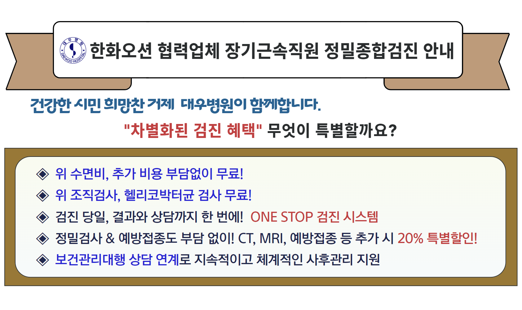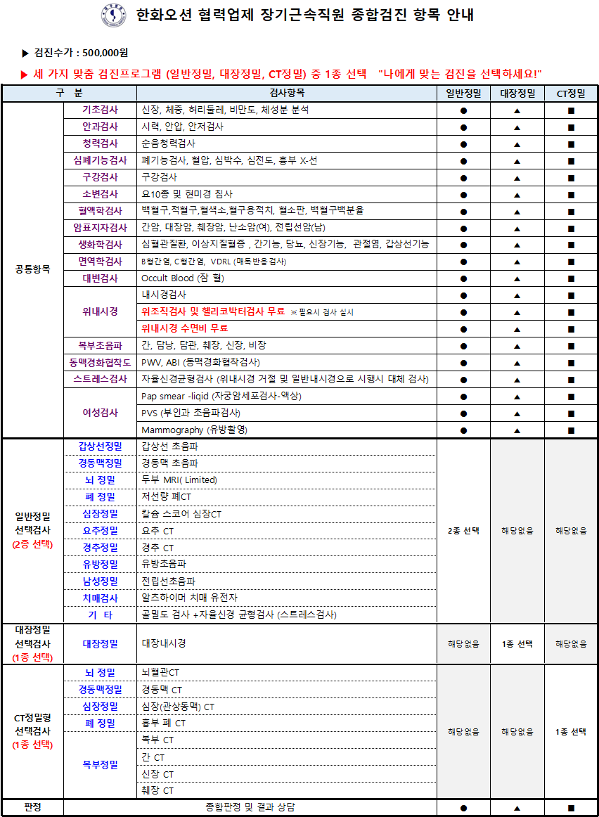 한화오션 협력업체 장기근속직원 정밀종합검진 안내